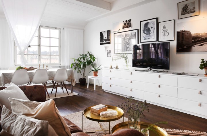An old chocolate factory transformed into a wonderful and luxurious loft in Stockholm. Originaliy it was built in 1920 and almost 100 years later it has become a 120 s.q. meters flat divided into different spaces such as 3 bedrooms, 1 bathroom and a toilette. The dining-living room and the open kitchen gives the main characteristics of a loft.