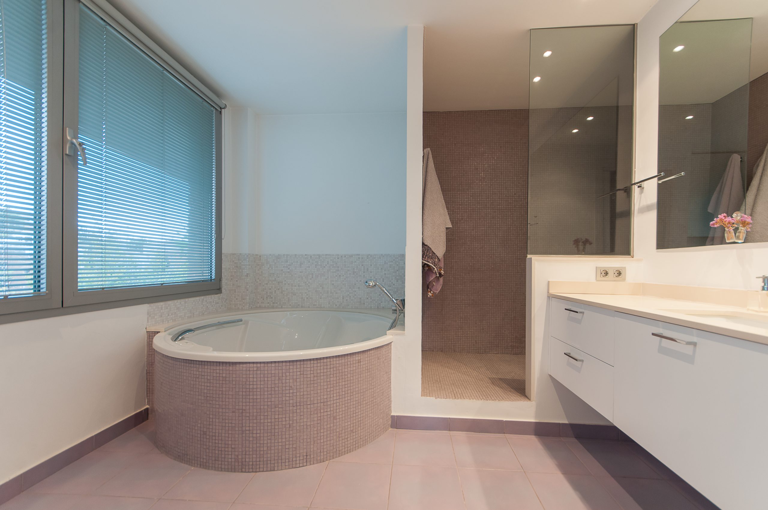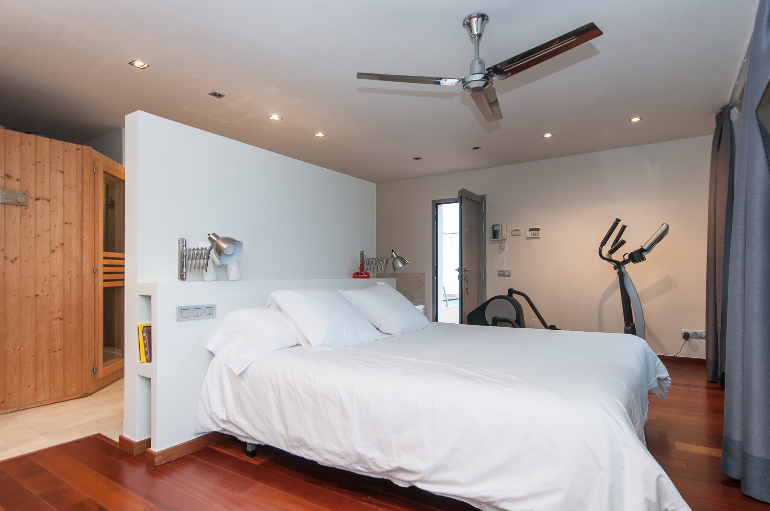 On the main floor you will find the living area in two levels, a beautiful and large equipped kitchen with diner area, great en suite bedroom that integrates a bathroom with sauna, tub and dressing room; two bedrooms with bathroom, and a single one with dressing room, an equipped bathroom with tub and shower.