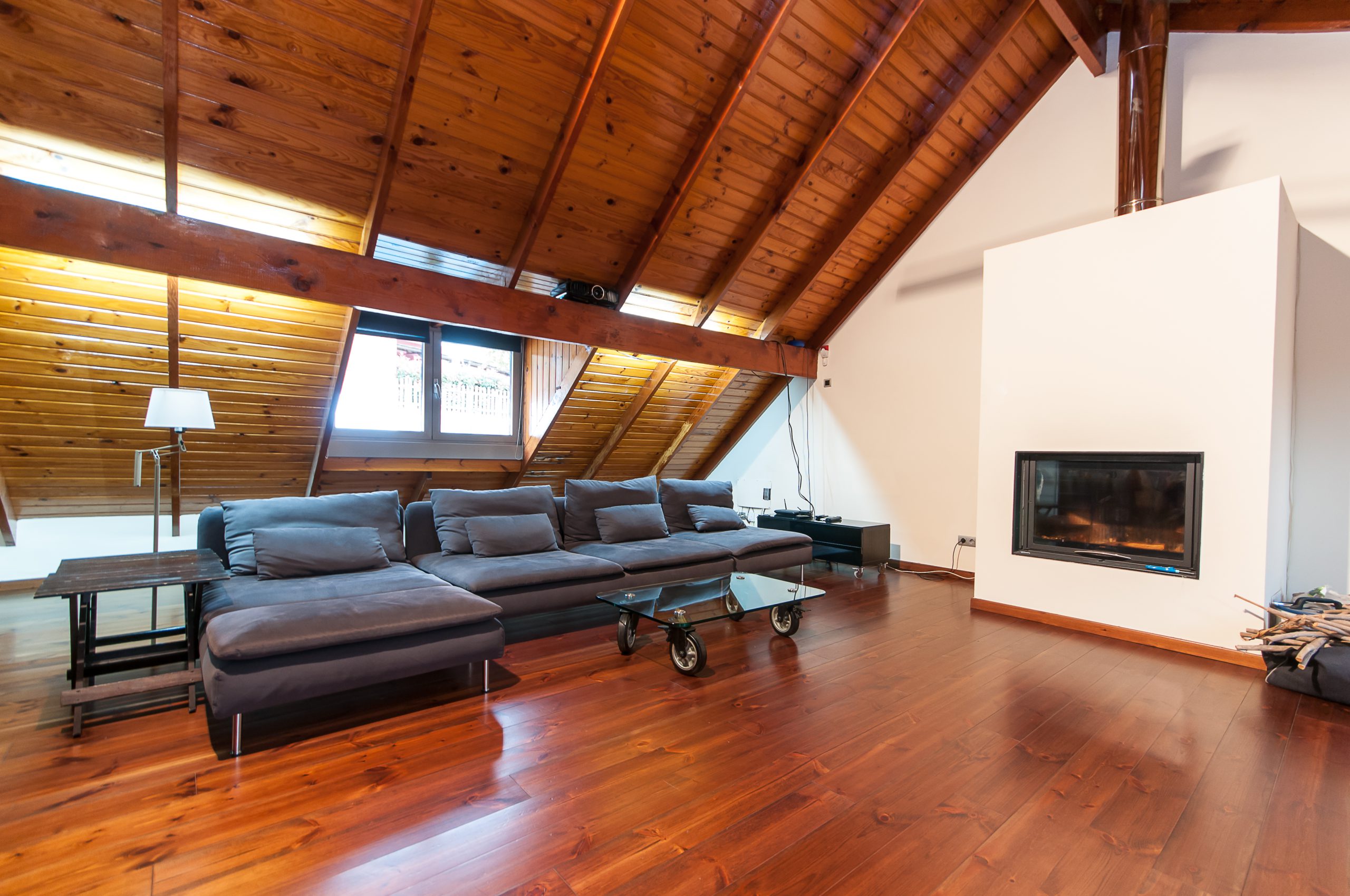 On the first floor we enjoy a multipurpose room with many possibilities to occupy the leisure time of the family as well as in the open room of the attic which is very cozy thanks to the fireplace and wood lining the ceiling.