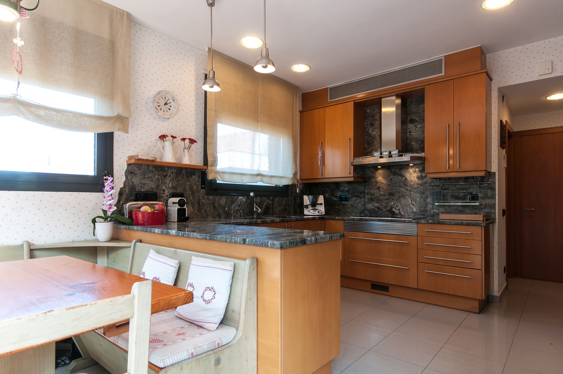 There are also a wide kitchen, 2 double bedrooms – one of them is an office- a suite with exit to the garden, and a bathroom with shower and bathtub, and a bathroom with shower.