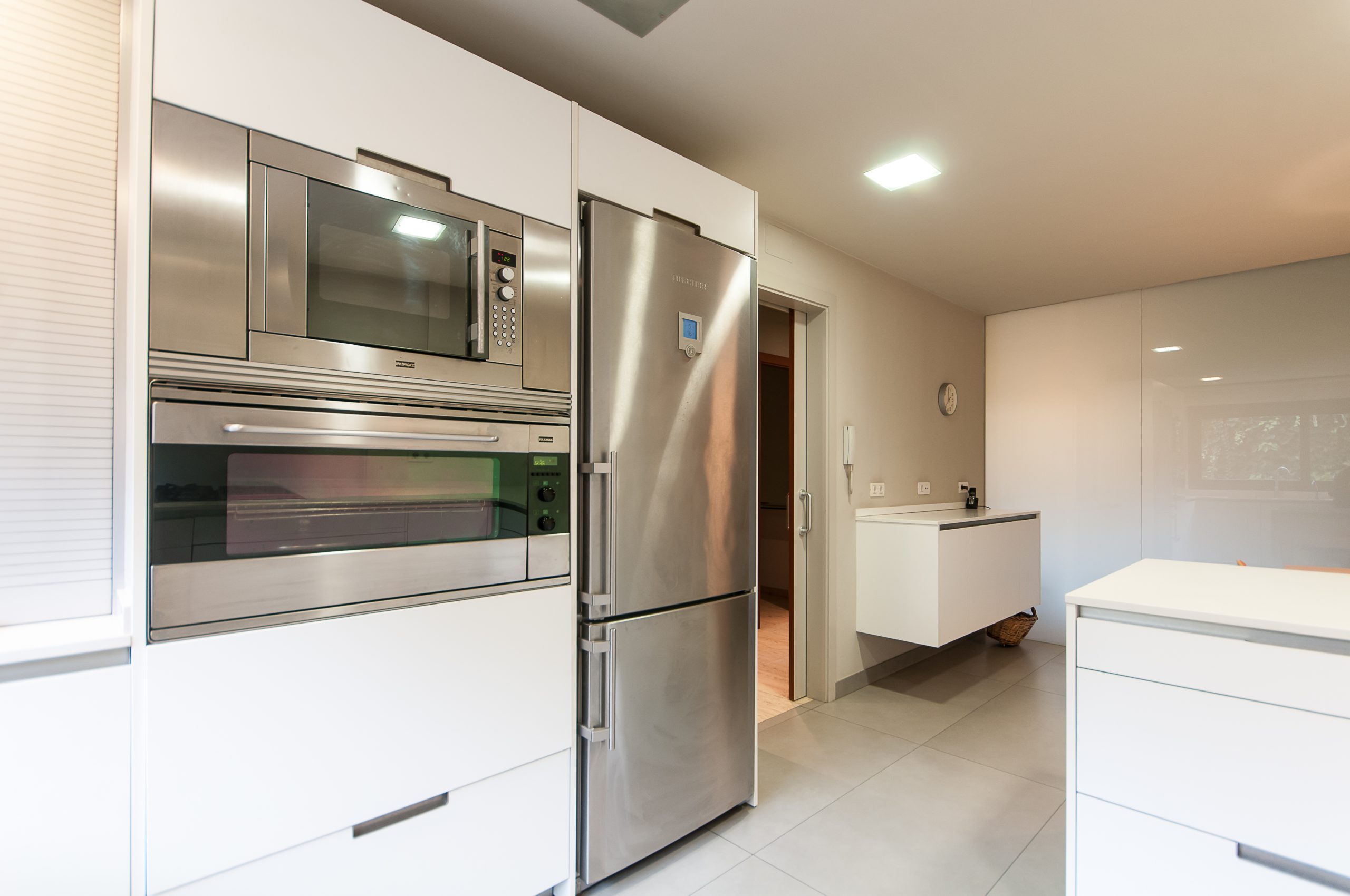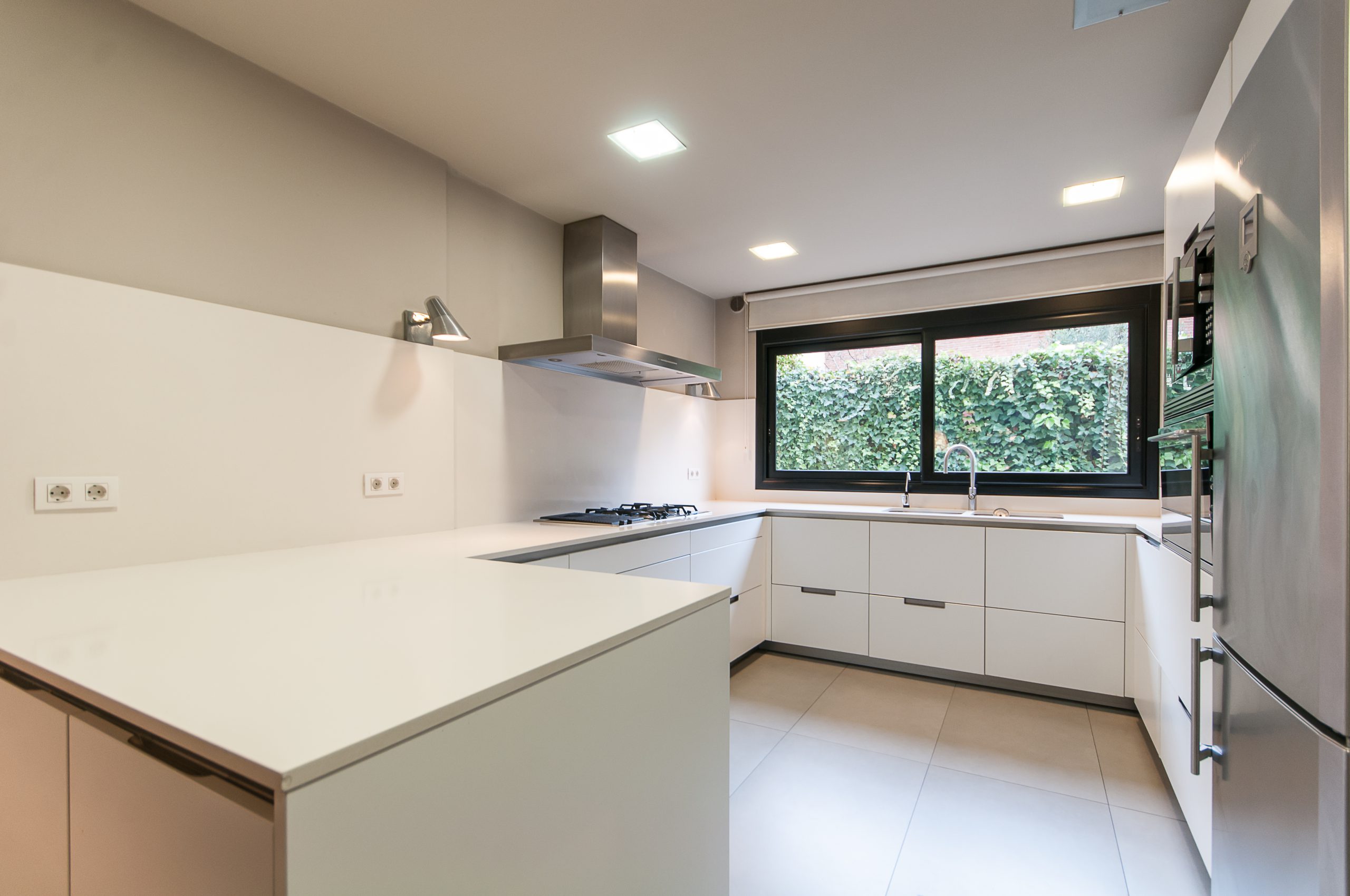 Aquesta estupenda cuina, completament equipada i d’un blanc impol·lut que aporta amplitud, es troba a una fantàstica casa distribuïda en 3 plantes més estudi, i ubicada a 5 min. caminant de l’estació de Valldoreix, a Sant Cugat. El més destacable de la cuina són els seus finestrals que donen al jardí i aporten molta llum durant tot el dia. A més, disposa d’una zona office amb un gran espai per col·locar una taula i gaudir dels àpats familiars.