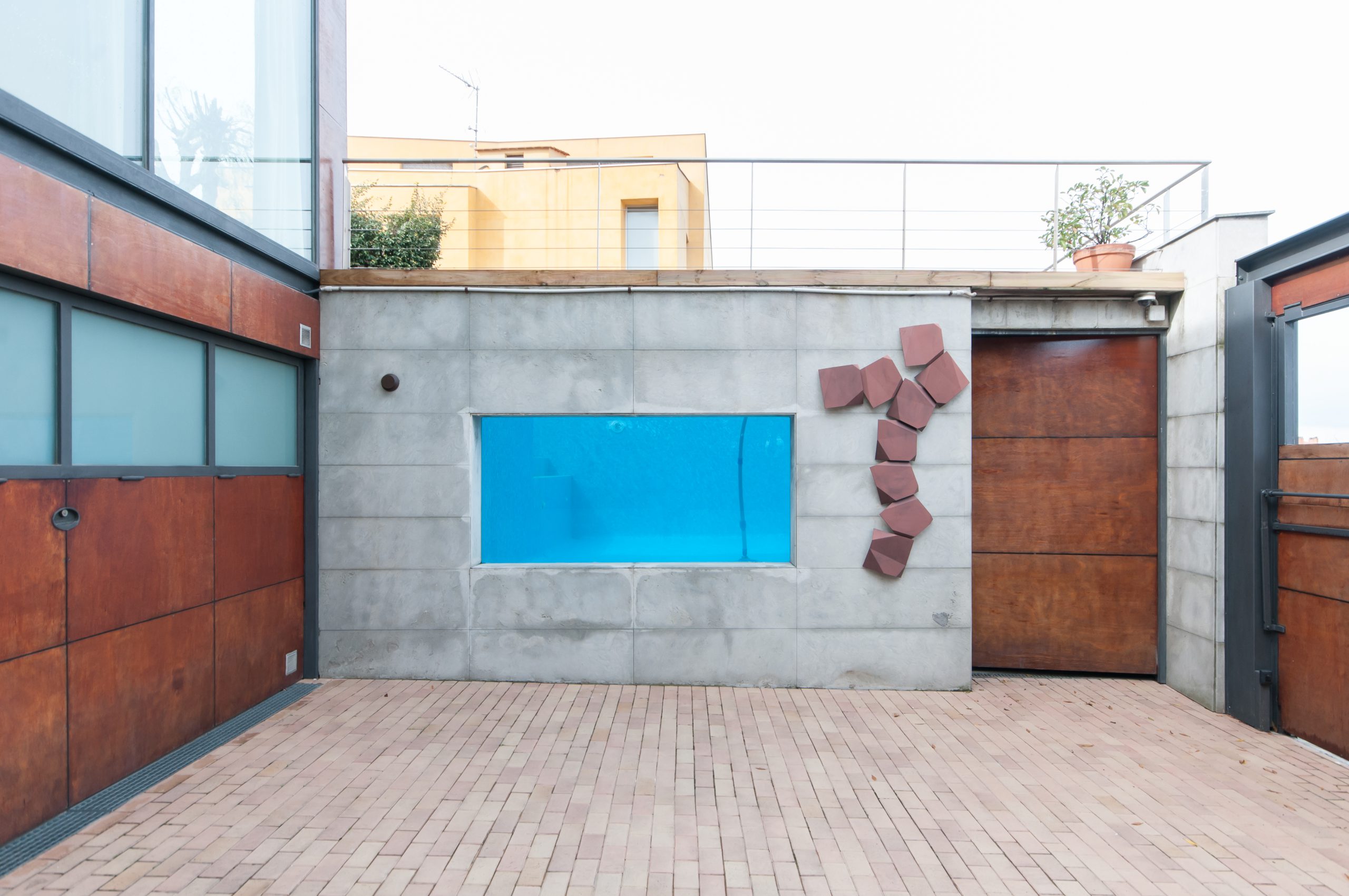 Una magnífica casa de disseny de 300 m2, en una parcel·la de 600 m2, distribuïda en 3 plantes amb jardí i piscina, es troba a Sant Cugat, una zona residencial molt propera a Barcelona, amb tots els serveis propers. El seu disseny és únic a la zona i la peça més destacable és la piscina que té una finestra davant de l’entrada de la casa.