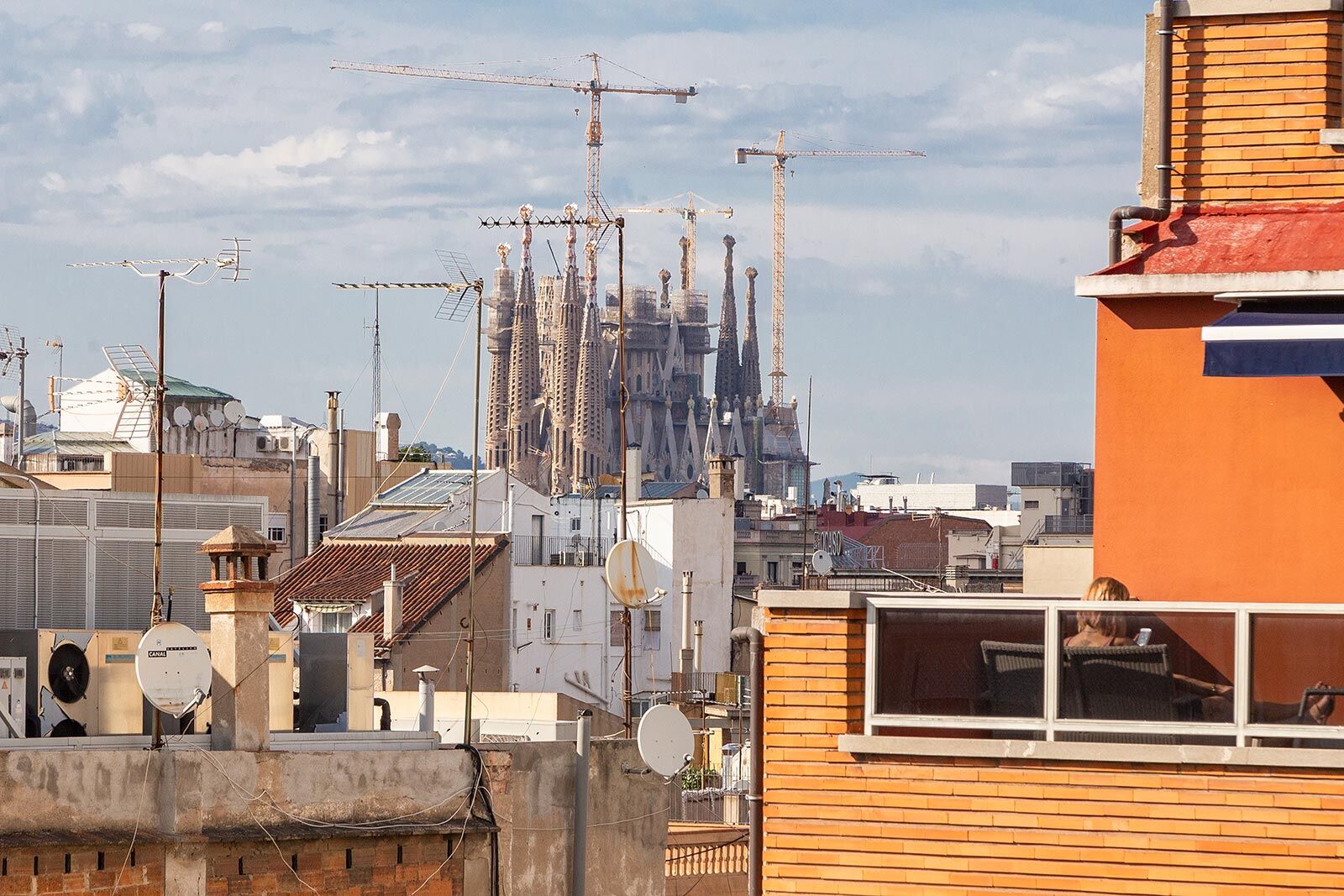 Aquest magnífic àtic està situat a prop de la Plaça de Catalunya i gaudeix d’una ubicació privilegiada amb vistes impressionants a alguns dels edificis més importants de la ciutat com la Sagrada Família, el mar i vistes panoràmiques de gairebé tota la ciutat.