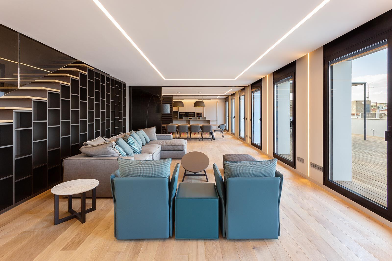 La terrassa d’aquest exclusiu apartament dúplex de 315m2 és de 174m2 i fa que sigui únic a la zona.