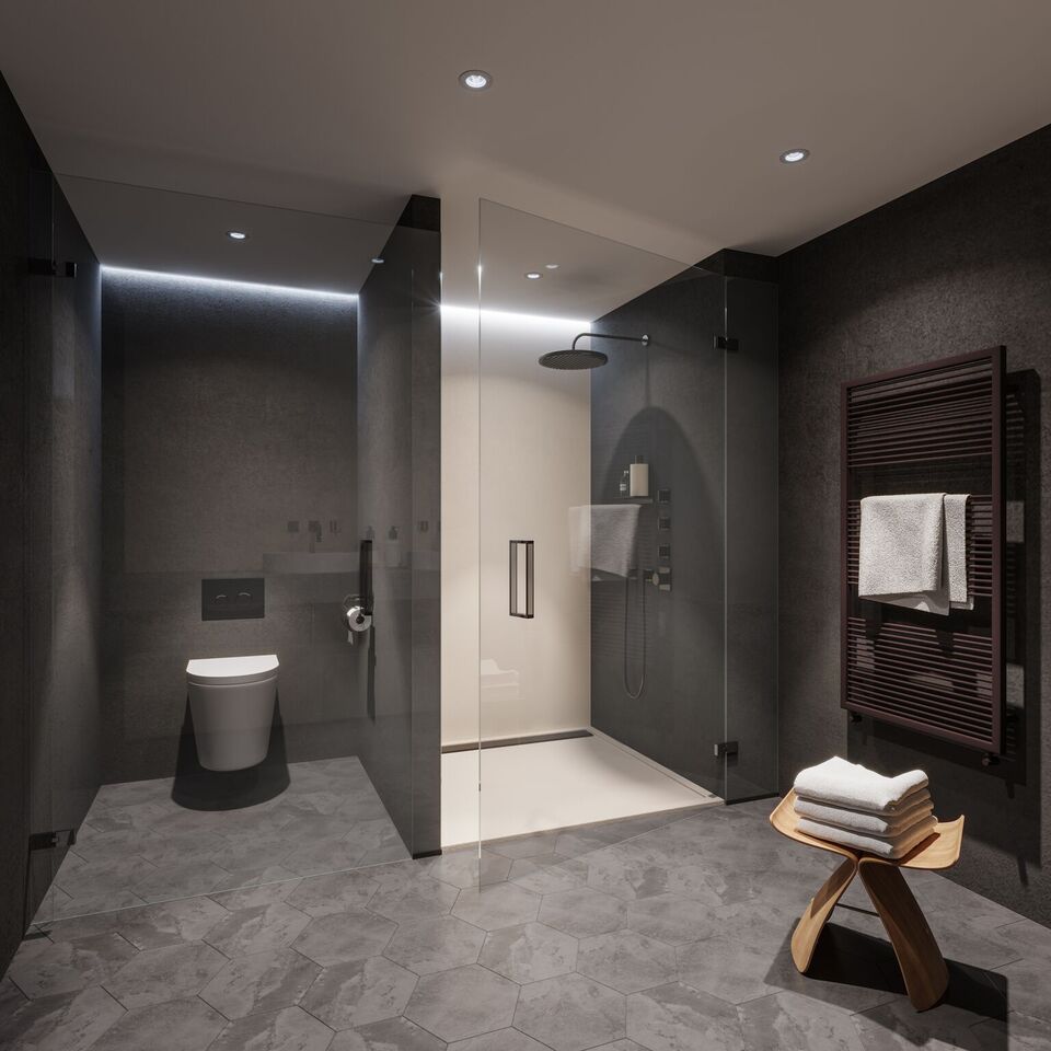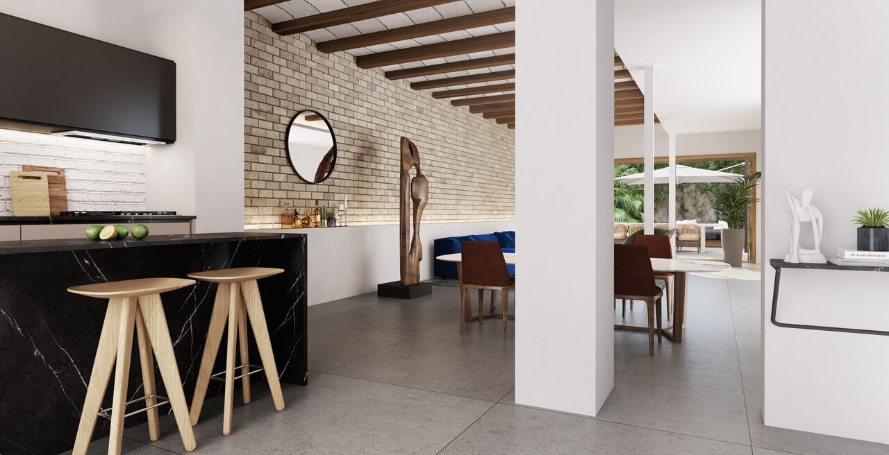 L’àrea de nit consisteix en 3 habitacions dobles en suite de 33,50 m2, 23,30 m2 i 14,70 m2 respectivament, una sala menjador, una gran sala d’estar de 51,50 m2, una cuina pràctica i totalment equipada i un bany per convidats.