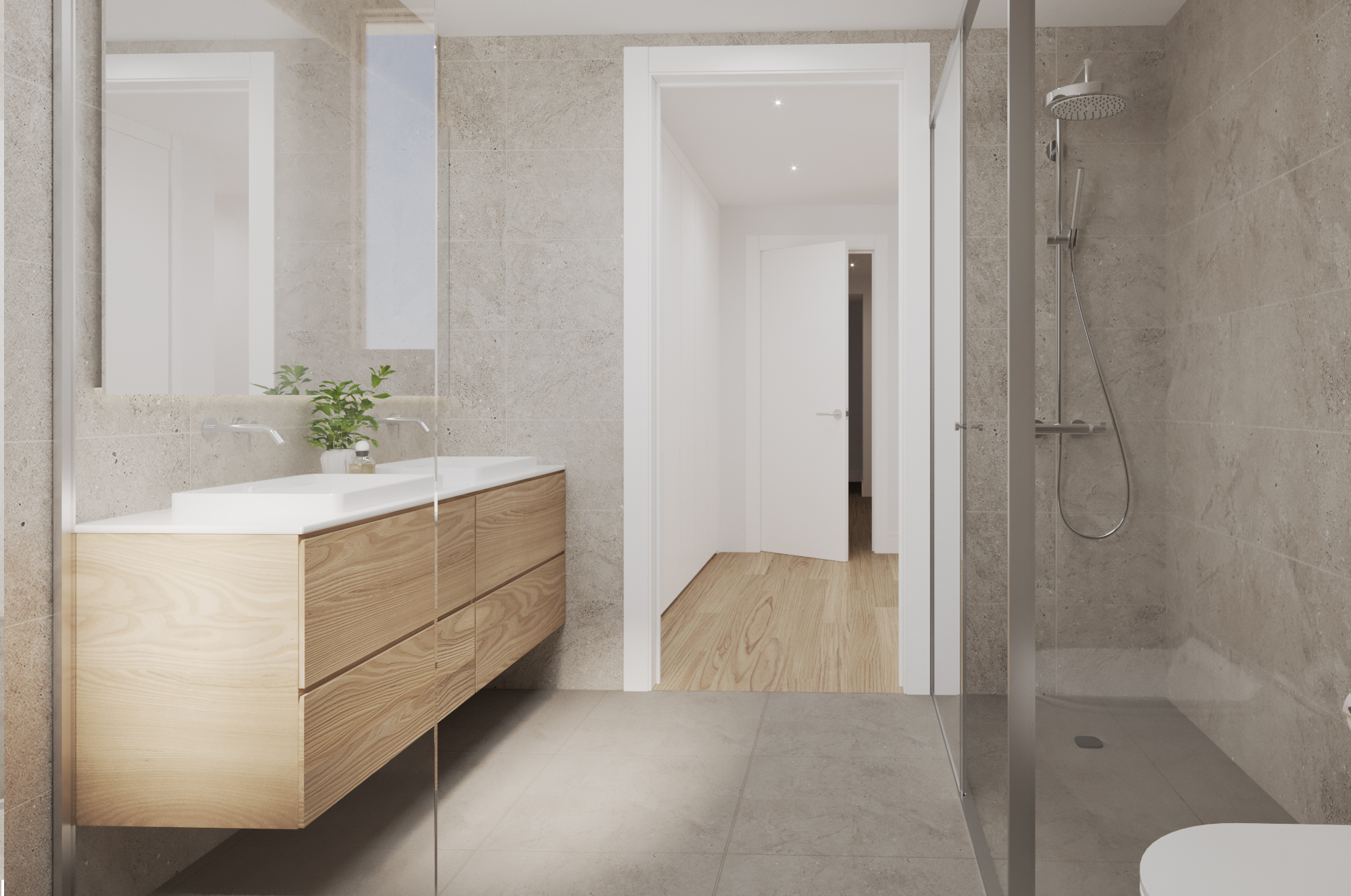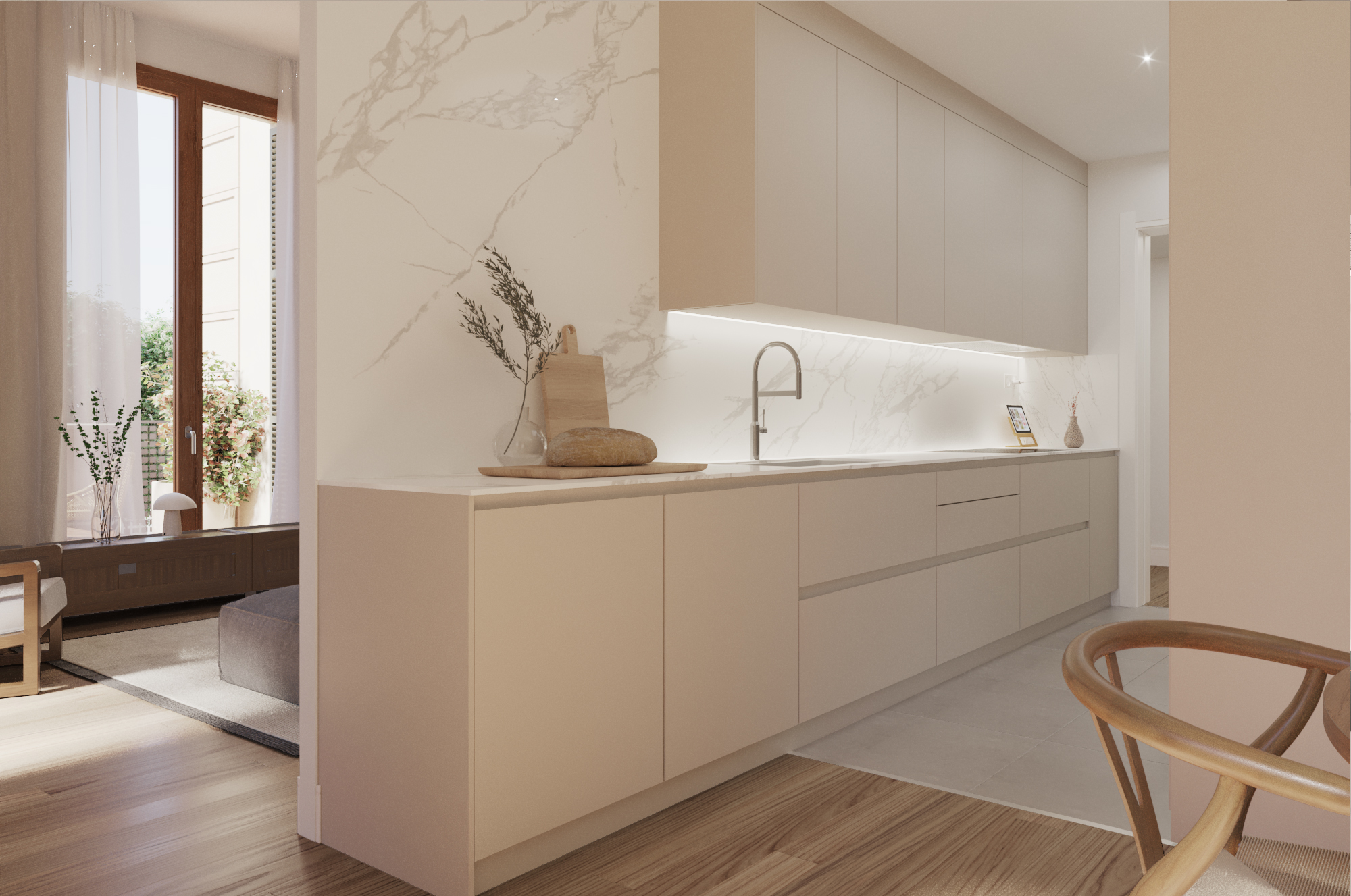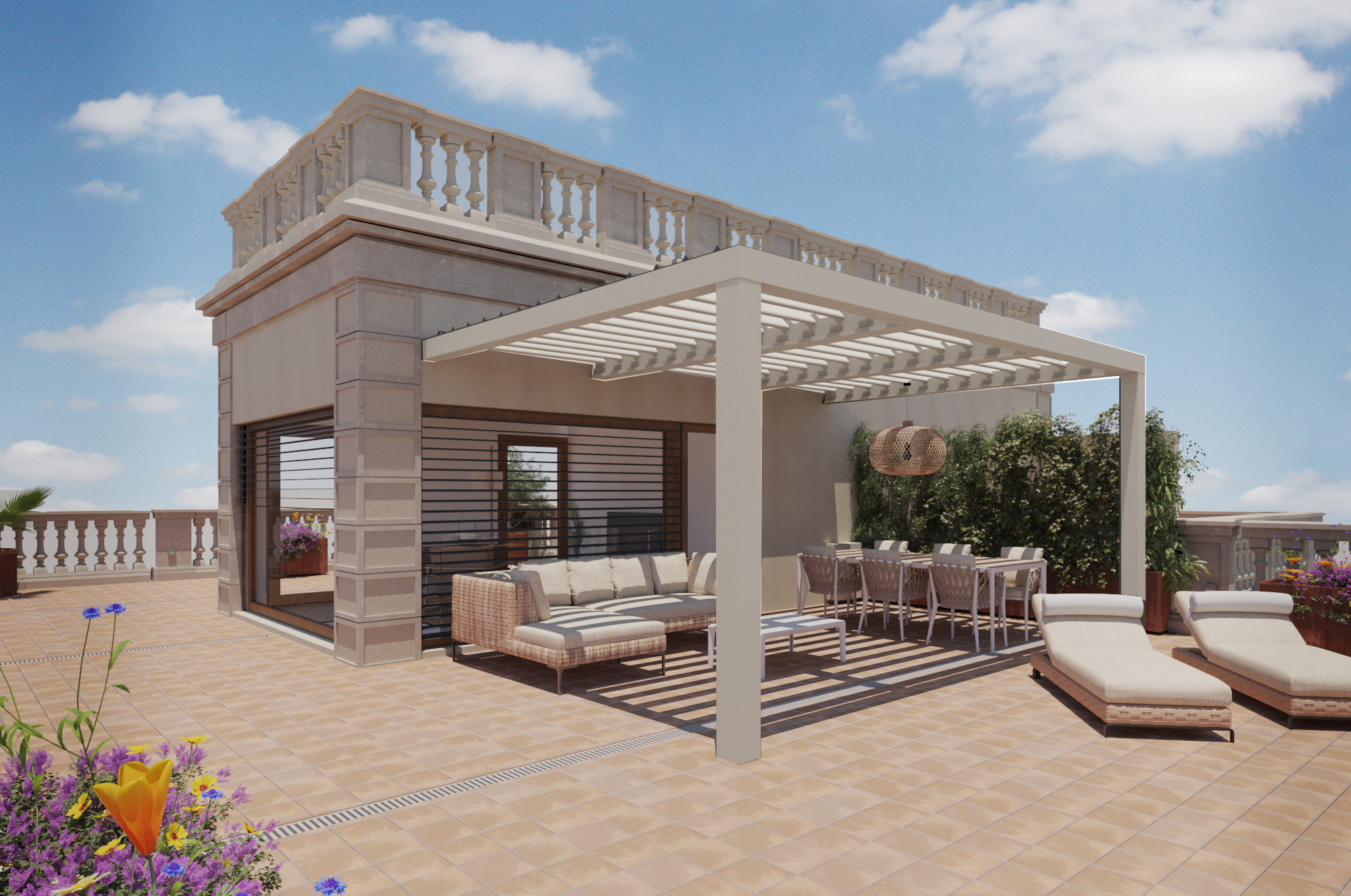 - ÁTICO: Dúplex de 203 m² con terraza-solarium de 135 m² en la azotea. 4 dormitorios, 3 baños y cocina abierta de 56 m² con acceso a una preciosa galería cubierta de 21 m².