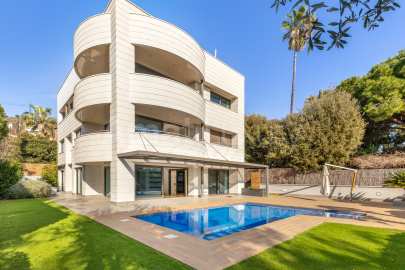 L'habitatge, distribuït en dues plantes, ofereix espais amplis, lluminosos i acuradament dissenyats per gaudir-ne al màxim. A la planta baixa trobem la zona de dia, presidida per un elegant rebedor amb una espectacular escala que dona pas a un saló de 44 m² amb accés directe a una gran terrassa entarimada de 170 m², piscina i jardí. Destaca la impressionant cuina-office de 32 m², totalment equipada, amb zona rebost, bugaderia independent i sortida exterior. En aquesta planta també hi ha un menjador amb sortida a la terrassa posterior, una sala de jocs, taller i dos lavabos. A la planta superior, la suite principal de 34 m² disposa de vestidor, bany complet amb dutxa i banyera, a més de balcons amb vistes al jardí i sortida a una gran terrassa-solàrium de 59 m² amb vistes panoràmiques. Completen aquesta planta tres dormitoris dobles, cadascun amb el seu bany en suite. Finalment, la propietat s’assenta sobre una parcel·la de 774 m², que inclou un garatge amb capacitat per a tres vehicles.